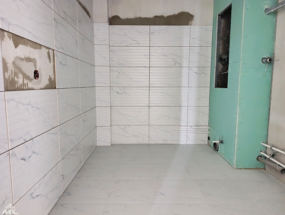 В жилых комнатах будет ламинат, на стенах – виниловые обои, потолки – улучшенная окраска. В кухнях, санузлах и прихожих на полу керамическая плитка. На уровень 1,8 м облицуют плиткой в санзонах также стены. В местах общего пользования – декоративная штукатурка и подвесные потолки.